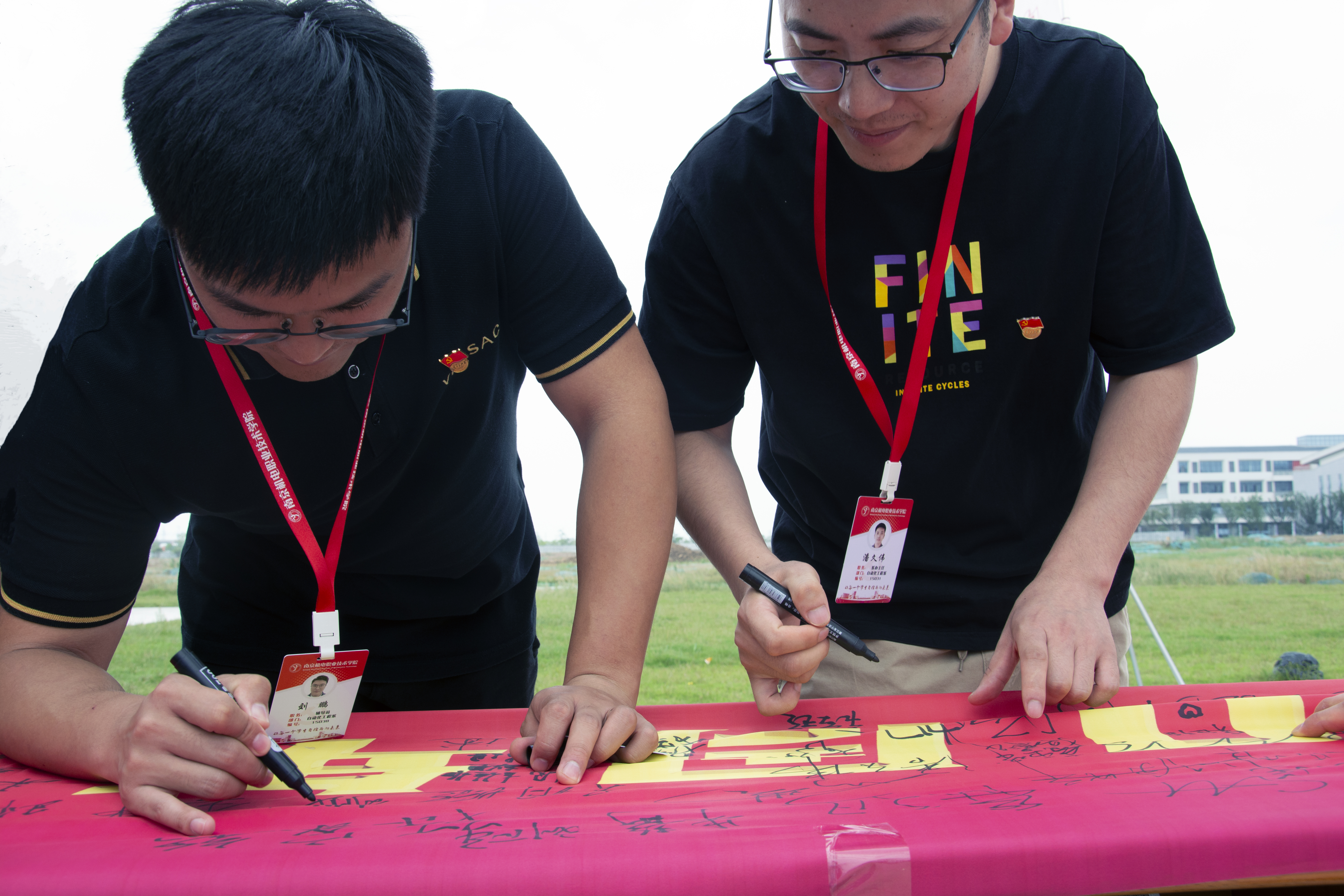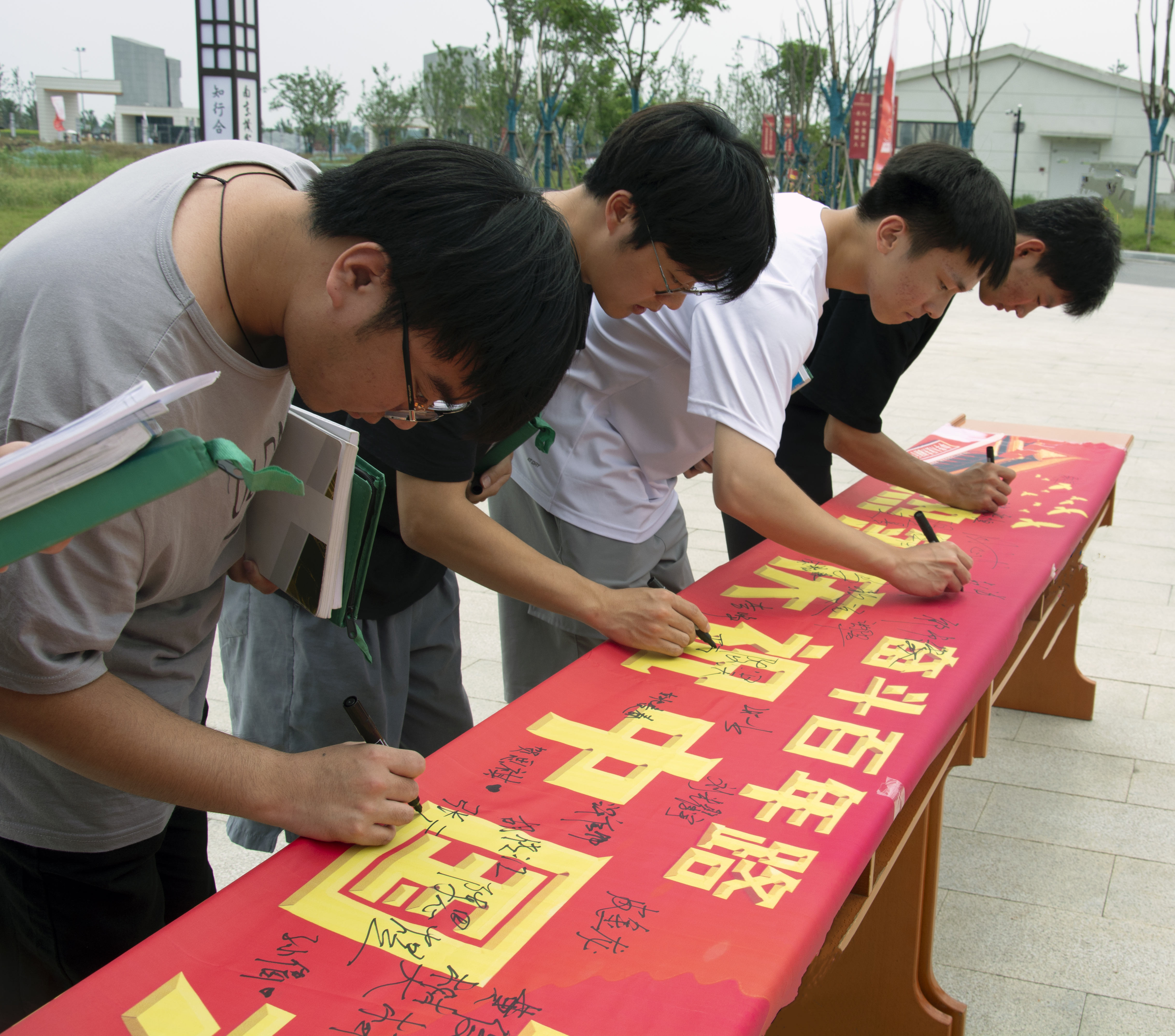 同学们了解到此次签名活动是关于庆祝建党百年,便纷纷驻足,争先恐后地在横幅上留下了自己的期愿和自己的名字,来向党致敬,坚定信念跟党走,同时对中国共产党自强不息的精神也已深深的刻在了同学们的心中。