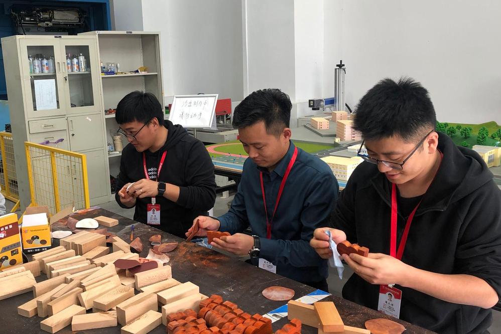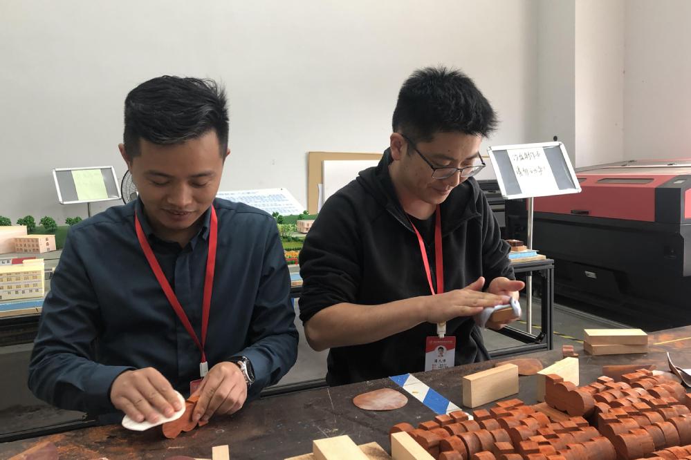 活动中,党员们在学院蓝岛创客导师的精心指导下动手制作庆祝一百周年“党徽工艺摆台”,经过切割、刻字,钻孔、打磨、上蜡等工序,亲手制作出精美的木质磁力党徽摆台,大家通过此次活动的参与,对于全体党员是一次心灵的洗礼,同时这次活动的成功开展,也增强了老师们的动手实践能力。
