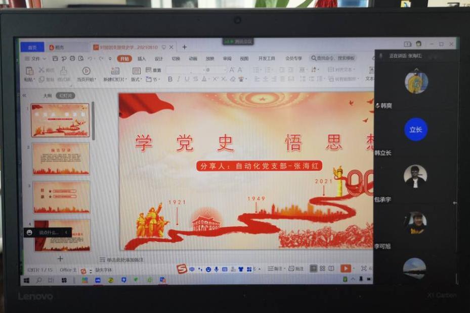 张老师详细讲解了中国共产党成立100周年来,从小到大、从弱到强、攻坚克难、一路成长,成为当今世界第一大党的过程。回望历史,不难发现,这和中国共产党有着强烈的政治意识、大局观念、维护核心、强调看齐有很大关系。认真学习党史既是一次把握规律、把握未来的理论学习,也是一次坚定信仰、坚定方向的党性教育。通过学习必将增强我们对党的感情认同、理论认同、政治认同,对继承和发扬光荣革命传统、党的优良作风,对提高自己的认识能力和处理实际问题的能力都是十分必要的和有益的。