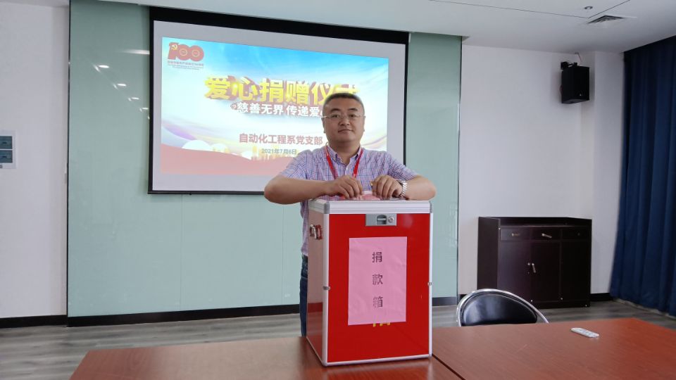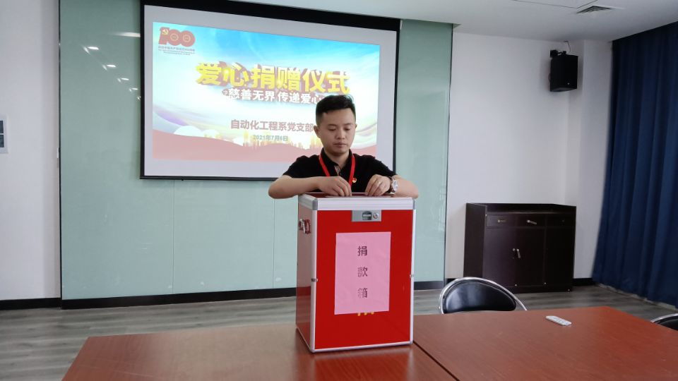 为发挥广大党员的先锋模范作用,体现党的先进性,弘扬团结互助精神和扶贫济困的中华民族传统美德,以实际行动践行社会主义核心价值观,近日,根据学院党委的统一部署,自动化工程系于7月6日中午在育德楼303会议室开展了党员爱心捐助活动。参会人员有党委委员副院长刁爱军、系党支部副书记高水冕、系主任潘理平、副主任张海红以及所有党员同志,值得赞许的是系部非党员同志也积极参与了本次活动。