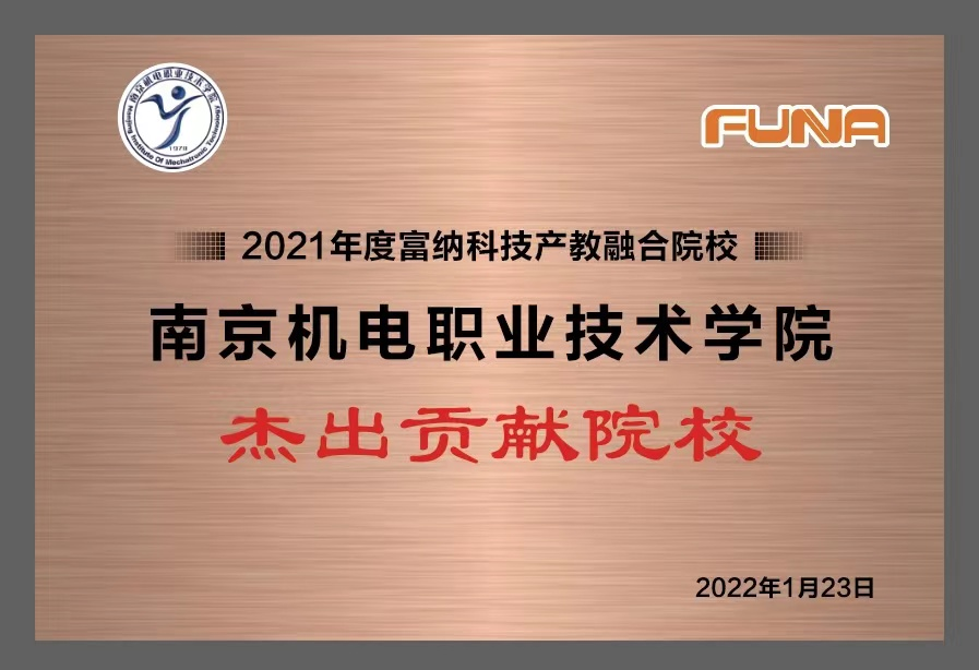 会上,苏州富纳艾尔科技有限公司授予我校2021年校企合作“杰出贡献奖”。近年来,学院非常重视与企业开展深度合作,以构建“以就业为导向,以检验学生职业能力为核心,以培养学生综合素质为主线现代学徒制培养模式,实现“学生-学徒-准员工-员工”的顺利过渡。