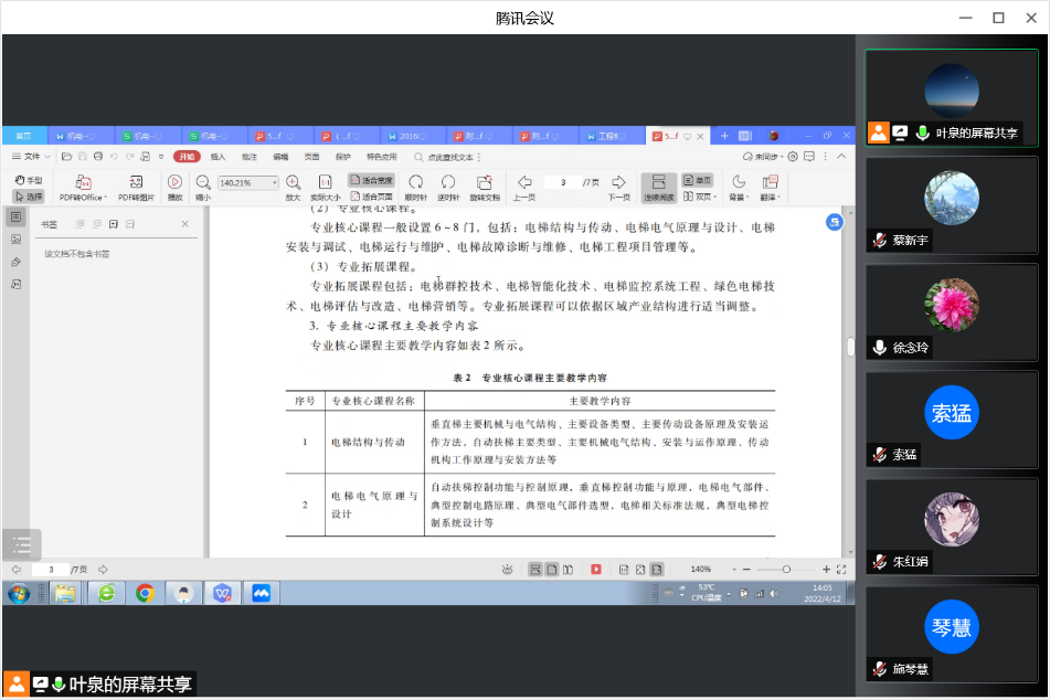 为进一步落实推进学校“十四五”战略规划,优化机电一体化专业布局,加强学校专业建设,丰富机电一体化专业结构,4月12日下午,机电一体化教研室开展线上电梯方向专业建设研讨会,叶泉老师主持会议。