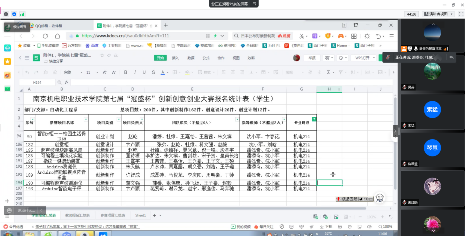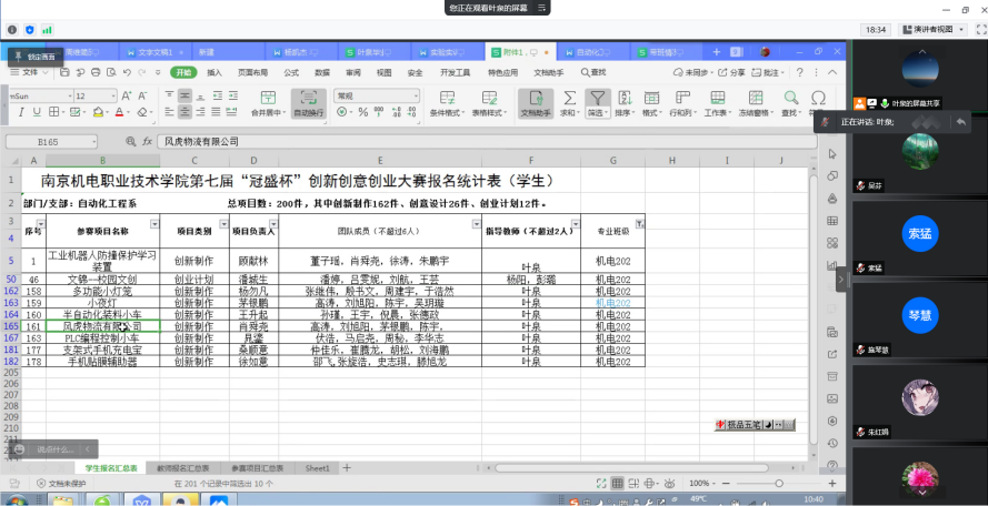 5月6日上午,自动化工程系机电教研室线上召开了第七届“冠盛杯”创新创意创业大赛优秀作品系部遴选会。本次比赛我系共收到学生作品208件,教师作品27件。首先是各专业班主任介绍自己班级学生作品。