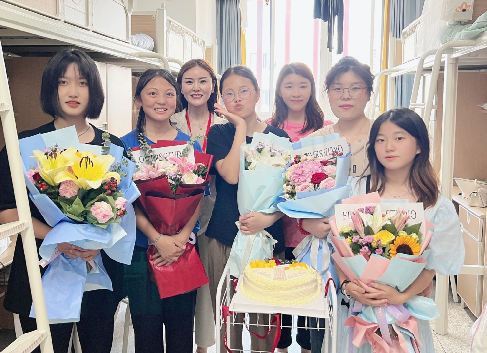 除此之外,系部还细心地为开学过生日的新生准备了生日蛋糕,报到当天,老师们就去为同学们庆生。机电222班的庄梦圆说:“太惊喜了,今年的生日不仅收到了鲜花,还有老师和同学一起帮我庆生,这对我来说真的是最特别又最难忘的一个生日!”