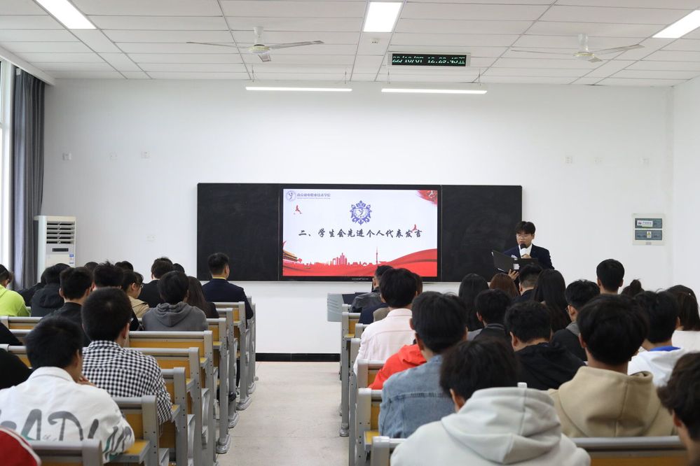 学生会指导老师于靖欢对上一届学生会工作进行了肯定,并分享了在学生工作中的感触;同时,对新一届学生会工作提出了新的要求,希望各部门将日常工作系统化、模块化,把各类活动做好分类,提高工作效率。