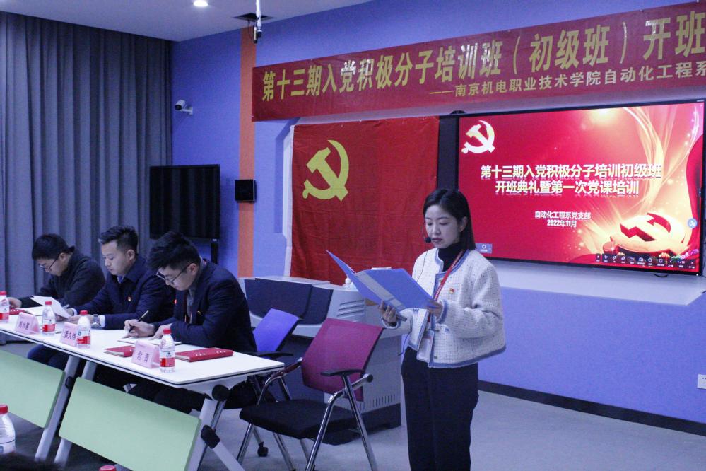 为学习贯彻党的二十大精神,教育引导入党积极分子端正入党动机,11月14日晚18时,自动化工程系第十三期党校初级班开班典礼暨第一次党课培训于思学楼410教室准时举行。此次开班典礼由我系党支部组织委员俞青主持,党支部副书记高水冕出席本次典礼,并作为第一课主讲人。出席本次典礼的还有党支部宣传委员潘久伟、党支部青年委员唐建伟。
