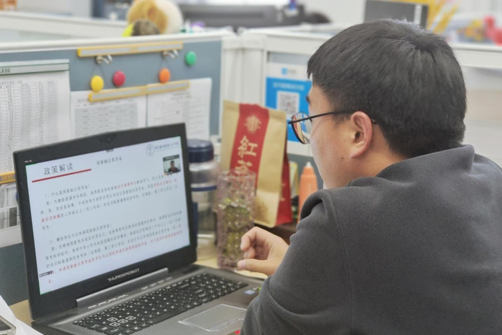 刘鹏老师围绕国家奖学金、国家励志奖学金、国家助学金、生源地贷款、服兵役高校资助政策、绿色通道、学校奖学金、勤工助学等八个方面向辅导员老进行详细介绍。通过系统的理论知识讲解,是的辅导员为学生申请各项资助奠定了基础,使得辅导员能够更加全面落实资助育人工作。