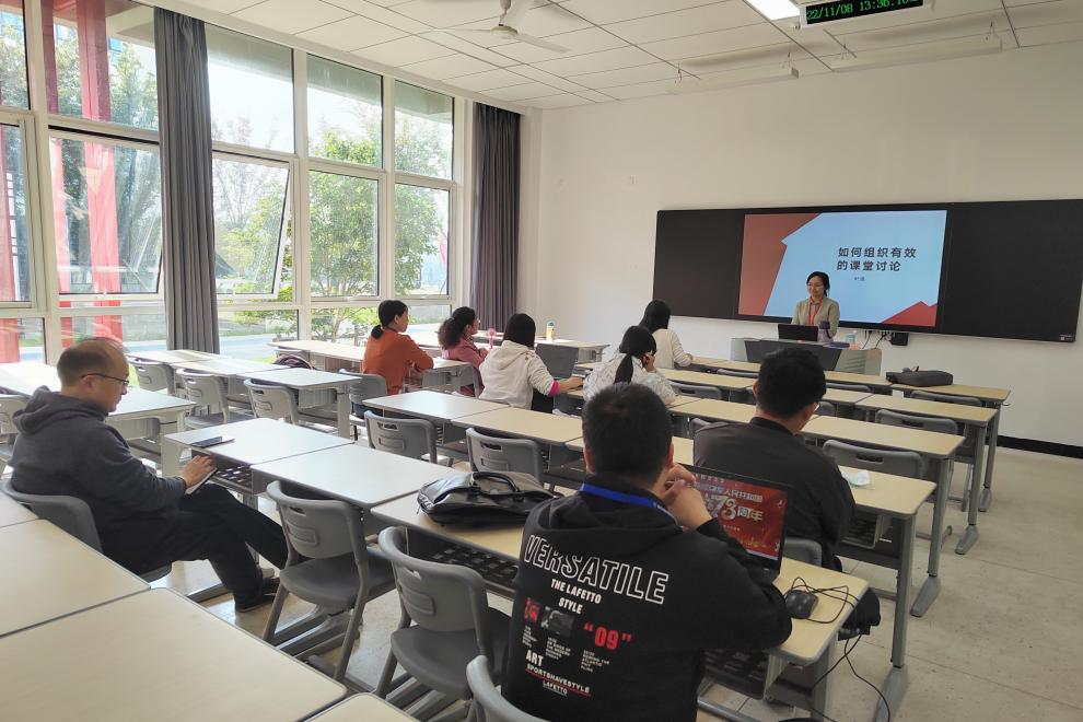 会议上,叶泉老师首先就课堂讨论的重要性展开了讲述,课堂讨论可以有效激发学生的学习兴趣,扩展知识面,发展创造性思维能力,培养分析和解决问题的能力,在发挥学生主体地位、凸现学生能力、彰显学生个性等方面起着重要的作用。同时通过课堂讨论,分享信息,同学可对课程有全面深入的了解,是提高课堂教学效果的好方法。随后,其他老师就课堂讨论如何有效开展发表了各自的见解,最后老师们一致认为,组织有效的课堂讨论需要从三个方面来把控,一是精心设计讨论的问题,二是合理地引导和调控讨论过程,三是重视小组讨论后的课堂总结。