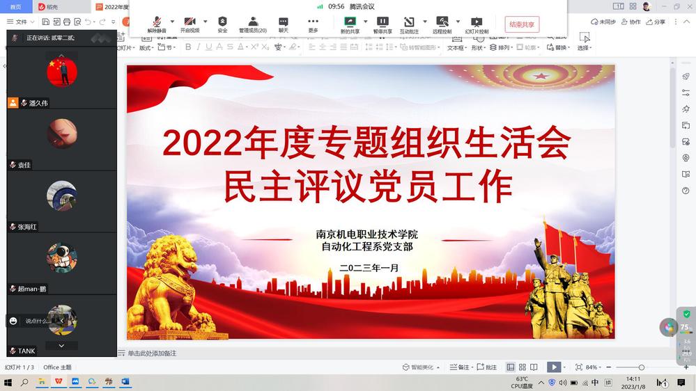 会上,高水冕代表支部作了《自动化工程系党支部2022年工作总结》。全体党员从思想、工作、学习以及生活上进行了剖析和汇报,进行了批评与自我批评。全体党员以无记名投票方式对支部党员进行了民主测评。