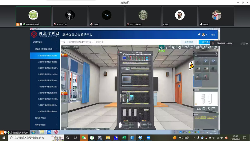 为了提升教师实践教学能力和信息化教学水平,12月6日下午,电气自动化教研室通过腾讯会议线上开展了电气控制与PLC应用技术虚拟仿真教学软件的培训,会议由李银露老师主持。