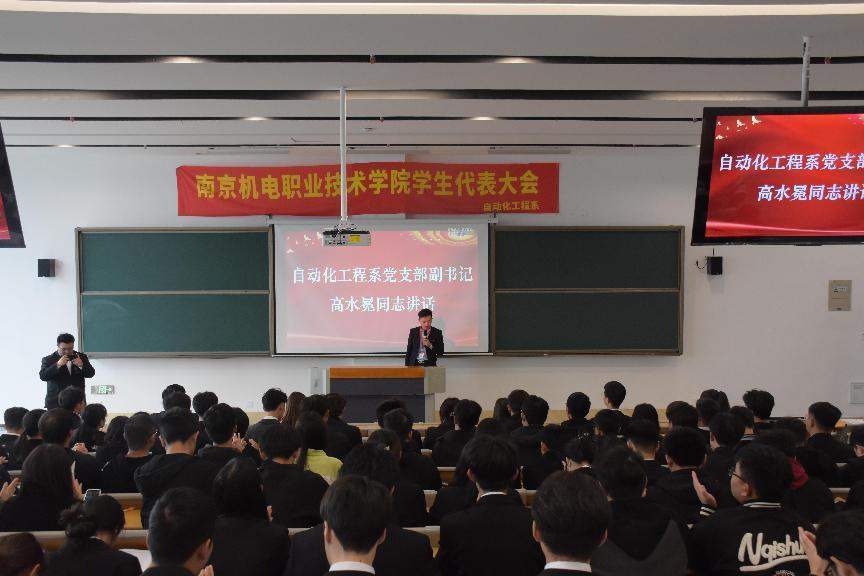 会议上,党支部副书记高水冕向大会的召开表示祝贺,并且对自动化工程系学生会取得的成绩给予充分肯定。同时,他向全校各级学生会组织、广大学生干部提出了三点希望和要求:一是希望全校青年学子坚定理想信念,在砥砺奋斗中成长成才。二是希望各级学生组织凝心聚力,在服务奉献中绽放青春风采。三是希望广大学生骨干以身作则,在提升本领中展现担当作为。
