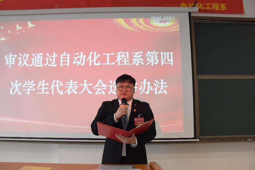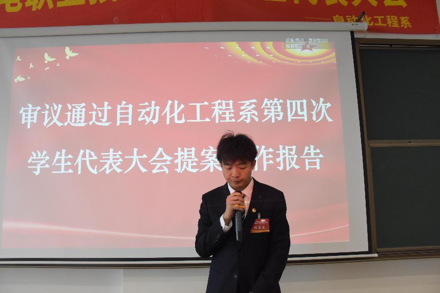 吴佳濠同学审议通过自动化工程系第四次学生代表大会提案工作报告。