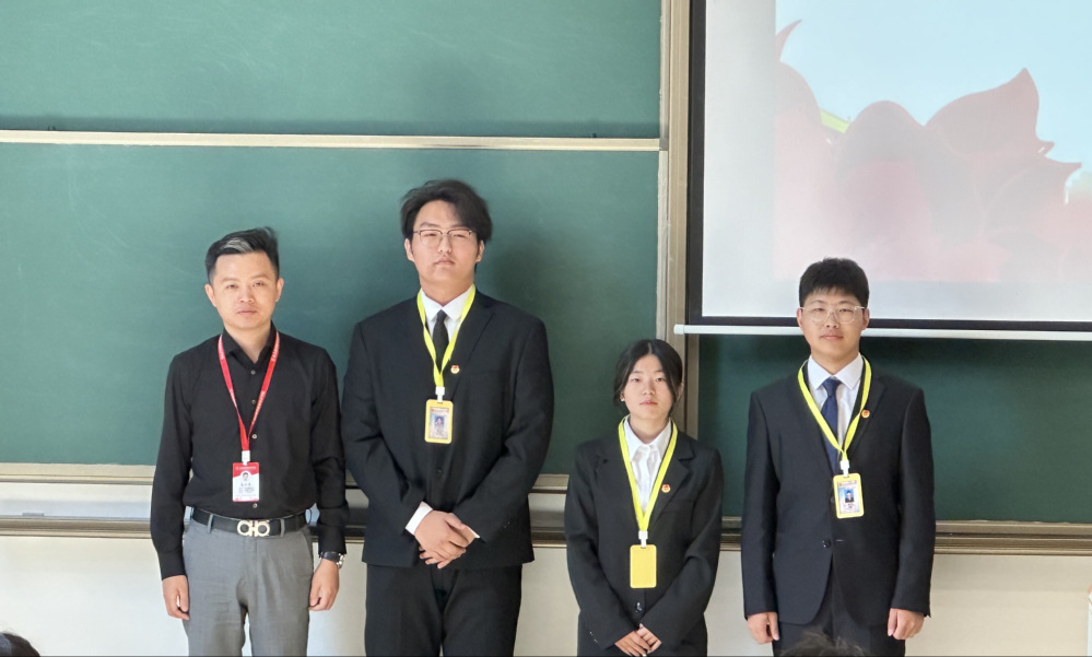主席团为生活部何伟强、陈琪,心协部陶厚同、潘建宇,学习部甄理、蔡兴杰,外联部张太凇、于骞然,文体部石尚、曹家乐,文宣部卢天祥、朱文旭十二名学生干部发放工作牌。