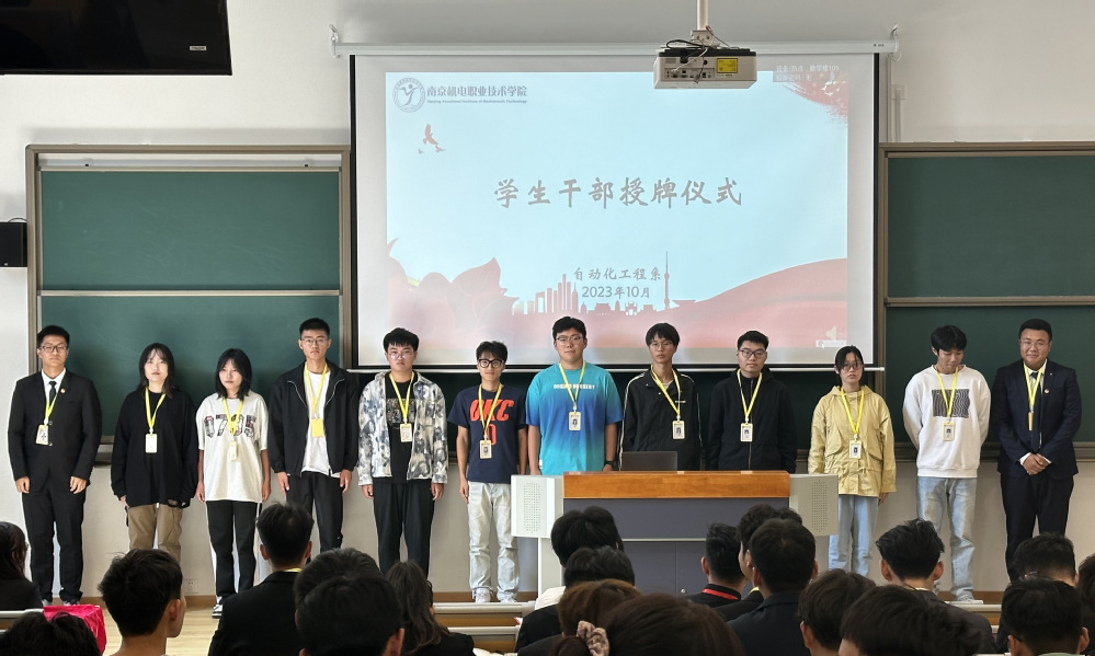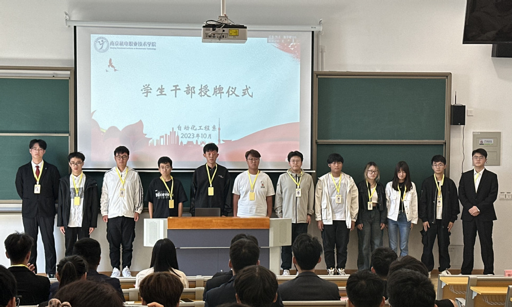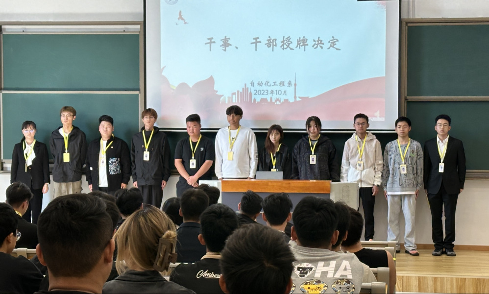 为进一步强化担当意识,激励同学们在新的起点上砥砺前行,自动化工程系于10月16日于勤学楼105举行系部学生干部的授牌仪式。参加本次授牌仪式的有自动化工程系党支部副书记高水冕和团支部书记周笛老师以及2022级、2023级班长和学生会、团总支全体成员参加。本次授牌仪式由学生会主席蒋翔宇主持。