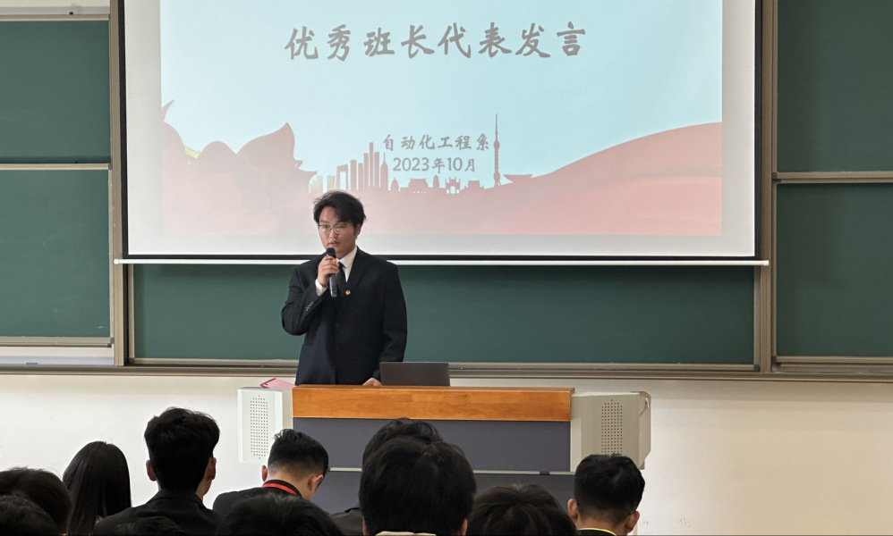 2022级优秀班长代表谢宇翔同学上台发言。