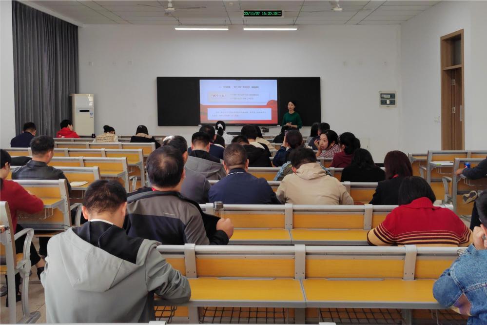 随后,许老师开始进入授课环节,她分别从习近平新时代中国特色社会主义思想创立的过程、回答的重大时代课题、主要包含的内容、历史地位,以及如何学等五个部分进行讲解,案例融入理论,深入浅出,老师们听得聚精会神。