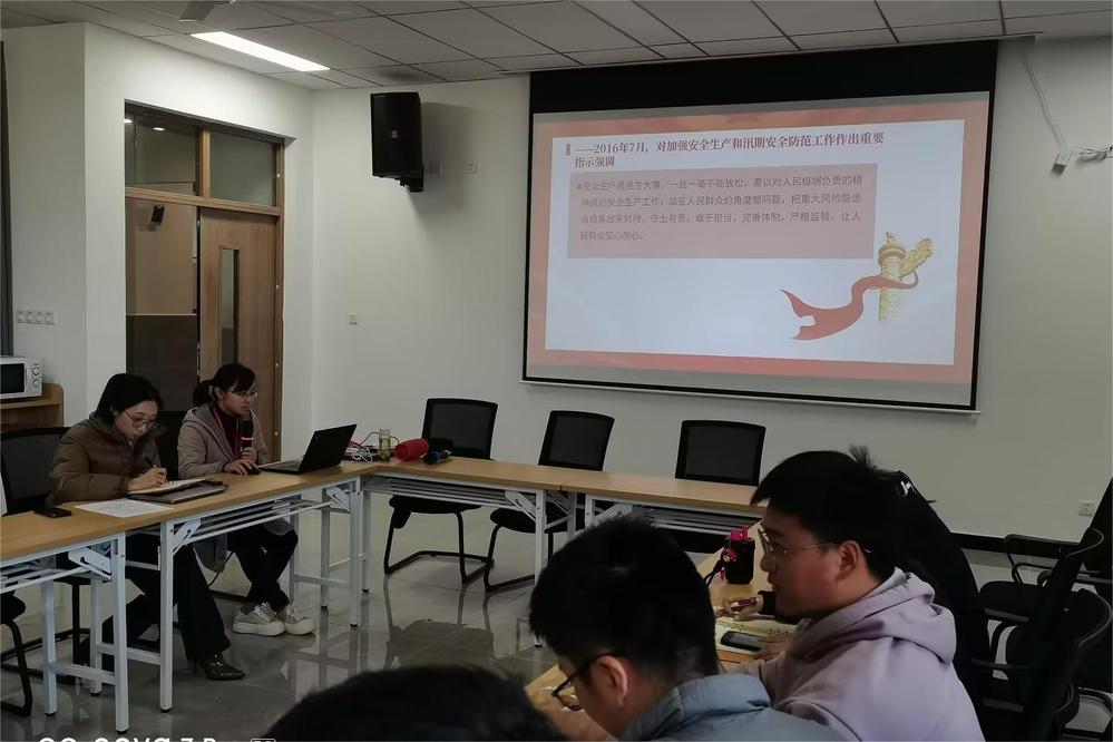 会议开始,叶泉老师带领大家重温习近平总书记在2013年至2023年期间关于安全生产的重要论述。然后再一起学习了我国安全生产方针,“安全第一,预防为主,综合治理”是我国安全生产方针。《中华人民共和国安全生产法》明确规定:“安全生产管理,坚持‘安全第一,预防为主’的方针,”把“综合治理”充实到安全生产方针当中,始于中国共产党第十六届中央委员会第五次全体会议通过的《中共中央关于制定十一五规划的建议》,“安全第一,预防为主,综合治理”作为安全生产的工作方针,是由国家的性质决定的,是由发展生产的经济规律决定的,是由重视人的安全需要决定的,也是由企业的社会责任决定的。最后大家一起观看了应急管理部和中央广播电视总台联合制作的安全生产专题片——《生命重于泰山》。