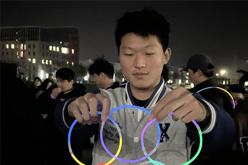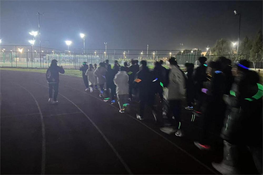 活动前,心理气象站全体成员做了充分准备。步入活动现场,同学们伴随着夕阳的落下,同学们带着荧光棒在操场上跑步,形成一道靓丽的风景线。跑步过程中,同学们积极交流生活中遇到的困难,并且释放压力。
