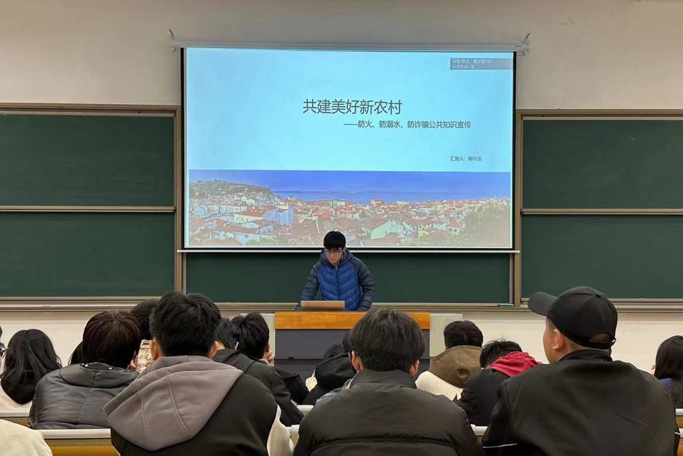 鞠坪辰同学从活动准备、实践过程、实践心得等三方面带来共建美好新农村的分享,他们在赵墩镇成河村党群服务中心为学生及其家长宣传防溺水知识,向社区的居民进行消防器材使用、逃生方法、安全隐患排查等防火宣传,向社区居民,尤其是老人进行防诈骗案例讲解,增强防诈骗意识。