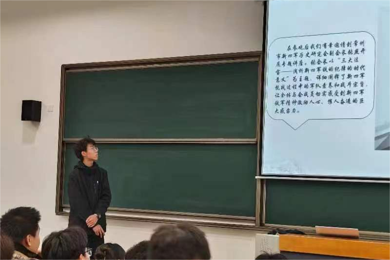 石梓彤带来有理想、敢担当、能吃苦、肯奋斗的实践活动分享,他们前往了高淳溧水新四军文化研究基地、红色李营、西舍村。在波澜壮阔的历史长河中,感受先辈们百折不挠、奋不顾身的奉献精神和军民团结、无坚不摧的磅礴力量,深切体会新四军抗战过程中的铁的精神以及强大感召力。