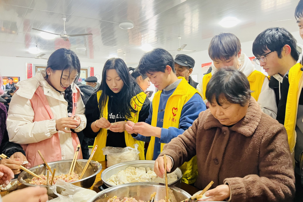 从一开始的默默不语到后来的笑颜相对;从一开始的踌躇不前到后来的积极响应;从一开始的左顾右盼到后来的专心致志。同学们边学边做、边做边学,包的饺子有模有样。邢丰村的老人们也是喜笑颜开说道:“你们要常来啊,我们多和年轻人交流,生活也丰富很多。”