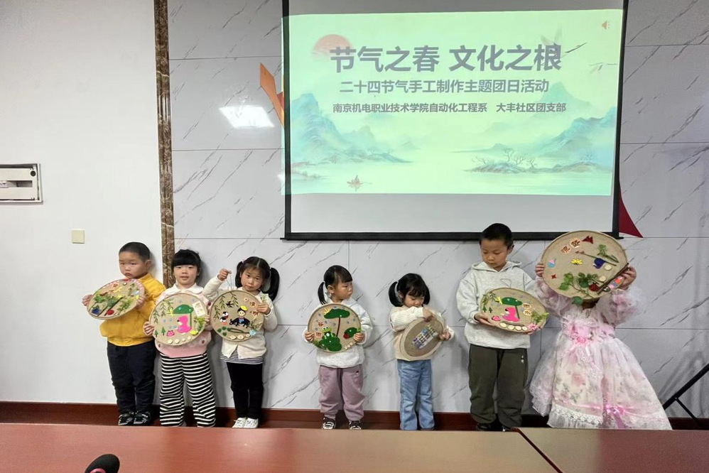 每个节气都是自然与人文的交融,是生活与文化的共生,承载着中华民族的深厚底蕴。为进一步丰富我系学子的校园文化生活,增强同学们对中华传统文化的认知与理解,发扬“奉献、友爱、互助、进步”的志愿者精神,自动化工程系电气223班团支部于3月30日到结对的淳溪街道大丰社区开展“节气之春,文化之根——二十四节气手工制作”主题团日活动。