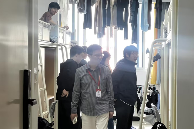 在走访过程中,老师们仔细查看宿舍卫生、物品摆放和使用情况,重点向学生强调宿舍安全隐患排查、内务整理和防电信网络诈骗等事宜,对宿舍卫生情况良好、学习氛围浓厚的宿舍给予肯定,对存在问题的宿舍提出整改意见与建议,同时要求同学们加强自我管理,鼓励大家在保质保量完成学习任务的同时,加强体育锻炼,积极调整情绪,课余时间积极参加第二课堂活动,提高个人综合素质,争做新时代优秀大学生。