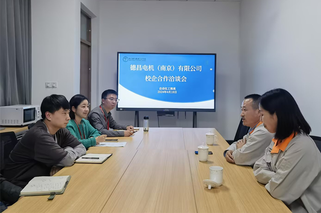 为进一步加强校企合作、协同育人,实现教育资源与企业优势互补,拓宽实习就业渠道,4月18日下午,德昌电机(南京)有限公司周周经理一行受邀来自动化工程系洽谈校企合作。自动化工程系党支部副书记杨军、系就业干事俞青、专业教师丁旭东、蔡新宇、辅导员贾涵参加洽谈会。