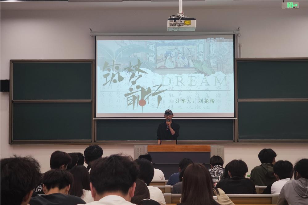 刘尧楷向同学们展示了他筑梦前行的历程。“只要不断地循梦和筑梦,梦想就有可能实现”。他详细介绍了自己梦想的实现过程,循梦的路上要有明确的目标愿景且不断前行,筑梦的路上要有着“为什么别人行,我不行”的不甘。要始终相信人生没有白走的路,也没有白吃的苦,所有的努力都会在有形和无形之中回报自己。