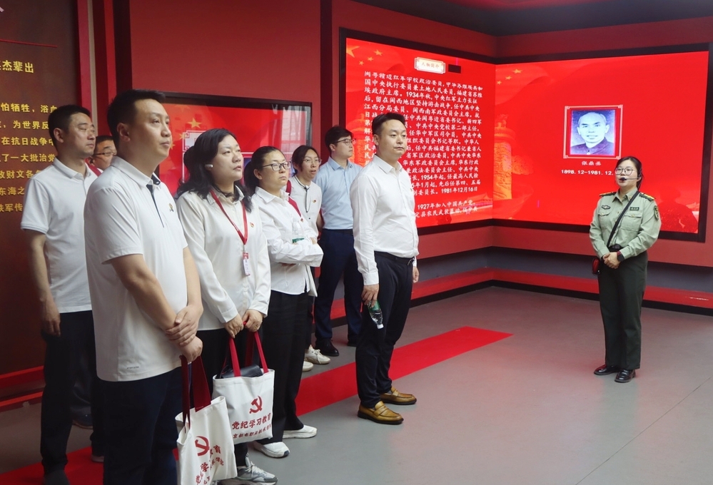 在中国新四军历史研究馆,跟随着讲解员的解说,党员师生追忆新四军从创建到壮大的艰难历程,大家不仅了解到这支被称为“铁军”的部队在革命战争年代的英勇善战和顽强作风,更被这支队伍具有的铁的意志和铁的纪律所震撼,认识到以《十条军规》《三大纪律,十项注意》《新四军拥政爱民十大公约》等为主要内容的纪律是新四军的“铁军”之魂、胜利之本。