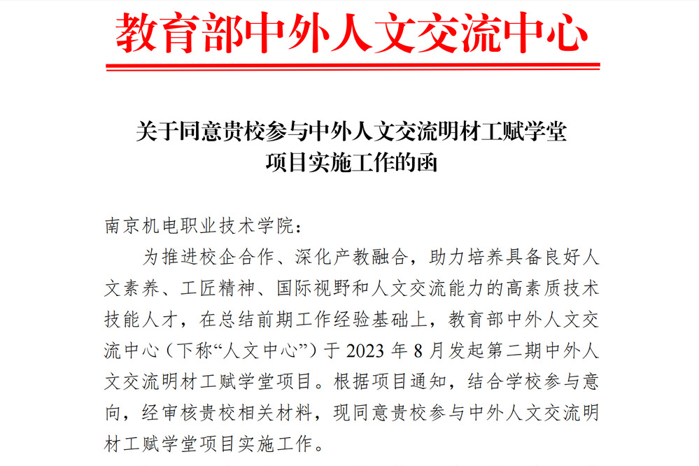 乐投线上平台(集团)官方网站成功入选教育部中外人文交流明材工赋学堂项目实施院校