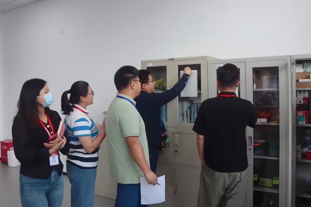 会后,赵学洪现场查阅了系部安全台账。检查组分组实地对敏行楼教职工办公室和敏行楼、笃行楼、知行楼等实训室场所的使用情况、日检周检情况和消防器材、用电安全和卫生管理等方面进行系统性现场安全检查。在检查过程中,检查组采取边查看、边布置、边整改的强有力措施,针对存在的问题和隐患,当场提出整改意见,要求限期整改,保障校园安全。