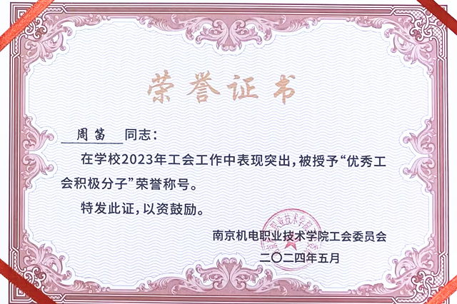 日前,学校工会委员会公布了《2023年度“优秀基层工会”“优秀工会干部”和“优秀工会积极分子”评选结果》,自动化工程系分工会喜获2023年度乐投线上平台(集团)官方网站优秀基层工会组织,周笛被评为2023年度乐投线上平台(集团)官方网站优秀工会积极分子。
