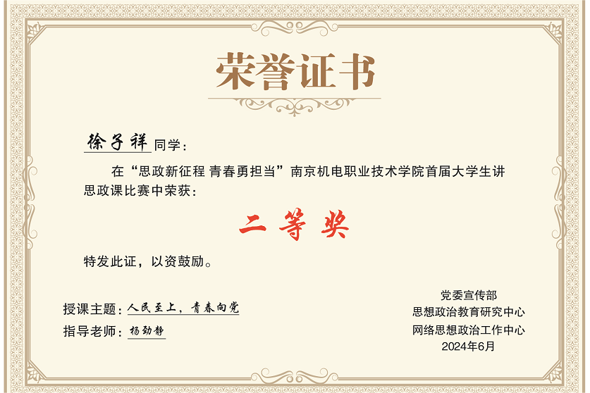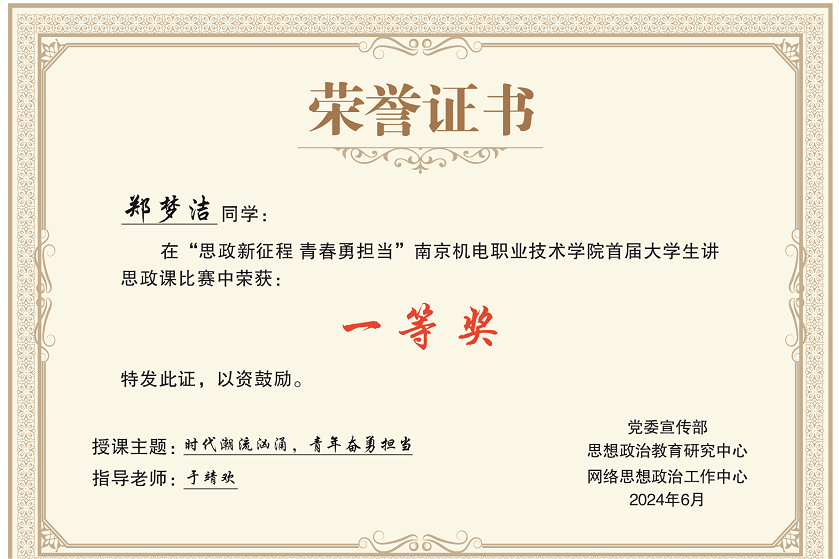 “大学生讲思政课”比赛既是对南机电学子思想政治教育学习成果的集中展示,又是学校思政育人和校园文化相结合的一张靓丽名片。比赛打破传统模式,由学生坐在台下“听”变为站在台上“讲”,真正体现了以学生为中心的教育理念,进一步推动习近平新时代中国特色社会主义思想进教材进课堂进学生头脑,深化新时代高校思政课改革创新。