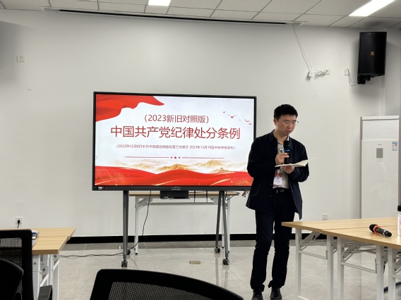 在第一次集体学习中,杨军带领党员对照《中国共产党纪律处分条例》修订内容进行了逐条学习。他从领会《条例》修订的重大意义、理解《条例》修订的重要亮点、把握《条例》修订的主旨要义及抓好《条例》的严格贯彻执行等方面着手,引导党员学纪、知纪、明纪、守纪。同时,号召全体党员用党规、党纪校正思想和行动,不断提高党性修养,在推进国家富强、民族复兴的伟业中踔厉奋发、勇毅前行。