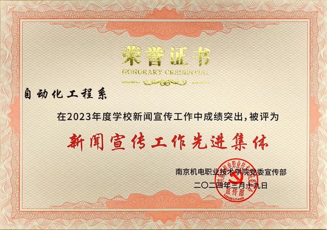 喜报:自动化工程系获评2023年度学校新闻宣传工作先进集体