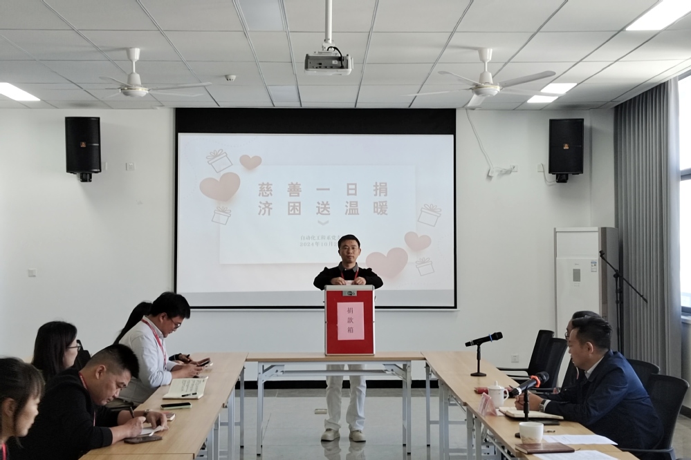 为弘扬中华民族乐善好施、扶贫济困的传统美德,积极为困难群众献爱心、办实事,10月24日下午,自动化工程系党支部开展“慈善一日捐,济困送温暖”现场捐款活动,本次活动由党支部副书记杨军同志主持,自动化工程系全体教职工参加活动。