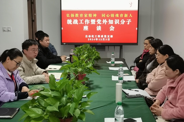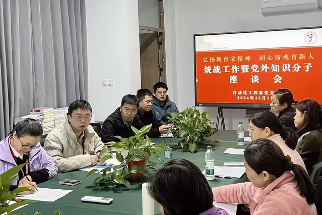 为深入学习习近平总书记关于做好新时代党的统一战线工作的重要思想,贯彻落实党的二十大和二十届三中全会精神,紧紧围绕学校中心任务,进一步加强党的统战工作,凝聚人心、汇聚力量、服务发展,12月3日下午,自动化工程系党支部在敏行楼405会议室召开以“弘扬教育家精神同心铸魂育新人”为主题的统战工作专题会议暨民主党派和党外知识分子代表座谈会。自动化工程系党政领导班子全体成员,各民主党派成员、党外知识分子代表近20人参加会议,会议由系党支部副书记杨军主持。