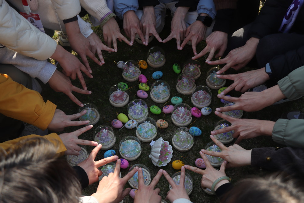 竖蛋不“躺平”,绘出新希望。在劳动实践课程组孙小翔老师介绍完春分后,学生们化身“春日艺术家”,在鸡蛋上绘制草地、花朵,用色彩定格心中的春天;挑战“竖蛋”时,有人屏息凝神,有人欢呼雀跃,一枚枚稳稳立住的彩蛋,仿佛在说:“再难的困境,也能找到立足的支点!”