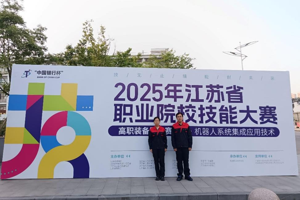 4月17日至4月18日,2025年江苏省职业院校技能大赛高职组机器人系统集成应用技术赛项在无锡职业技术学院举行,来自全省各高职院校的153名教师及学生选手同场竞技。我系机电一体化技术专业学生周冬杰、张宸榕及余涛三位同学在叶泉、蔡新宇老师的指导下获得团体三等奖,许璐、杨俊老师获得教师组团体三等奖。