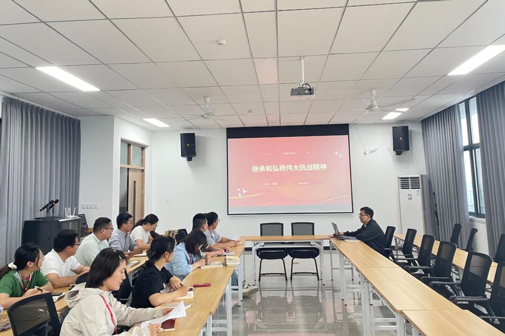 杨俊从抗战精神的形成背景、丰富内涵和时代价值三个方面展开了详细阐述。伟大抗战精神是在中国人民抗日战争的壮阔进程中孕育形成的,它以天下兴亡、匹夫有责的爱国情怀,视死如归、宁死不屈的民族气节,不畏艰险、血战到底的英雄气概,百折不挠、坚忍不拔的必胜信念为核心内涵。这种精神不仅是中华民族在抗战时期的精神支柱,更是激励我们在新时代不断前进的强大动力。杨俊表示,继承和弘扬伟大抗战精神是高校思想政治教育的重要内容,鼓励各位老师将抗战精神转化为实际行动,在工作和生活中勇于担当、积极进取,为实现学校的发展目标和国家的繁荣富强贡献智慧和力量。