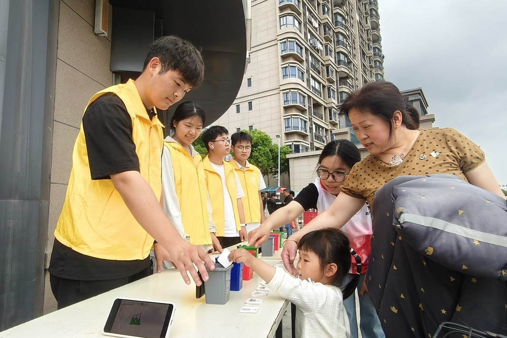带着满满的热情与知识,团员青年们前往碧桂园社区,兵分两路展开行动。一支队伍化身“环保使者”,向社区居民、周边商家发放垃圾分类宣传手册,耐心讲解相关知识,并组织趣味互动小游戏。志愿者们用迷你垃圾桶和卡片模拟垃圾投放场景,让居民在轻松愉快的氛围中掌握分类技巧。小朋友们也积极参与其中,在欢乐互动中,一颗环保的种子在他们心里悄悄种下。