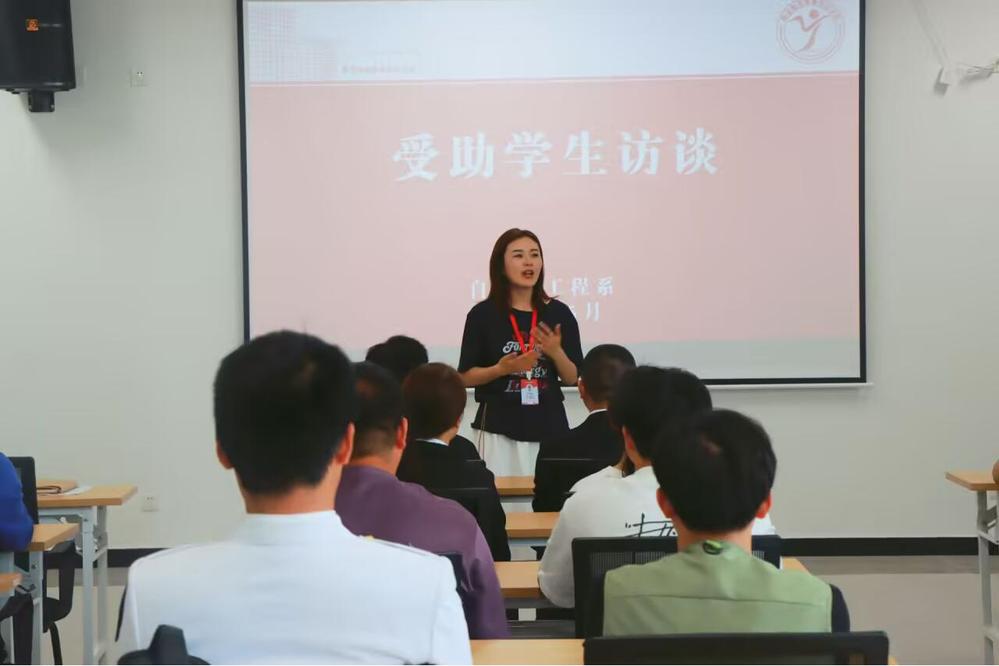 在系部座谈会上,于靖欢老师介绍了座谈会的背景和目的,强调了资助工作的重要性和意义。随后,受助学生代表依次分享了各自的成长故事。