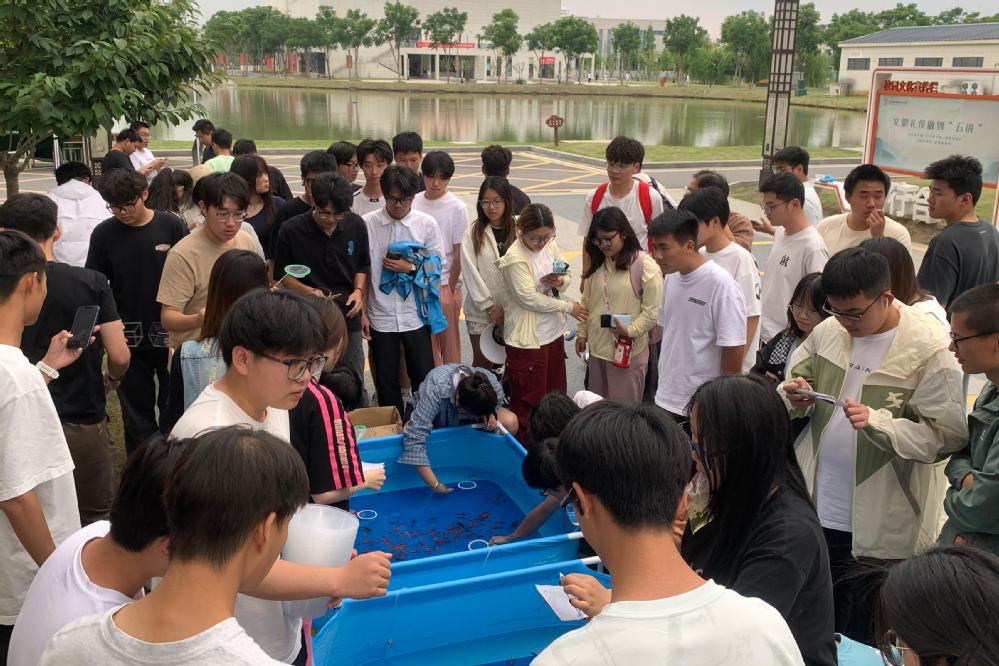 活动开始前,志愿者们精心布置了场地,色彩斑斓的水族箱、活泼灵动的金鱼以及准备齐全的“纸网”工具,瞬间吸引了众多同学的目光,大家怀着好奇与兴奋的心情纷纷参与其中。
