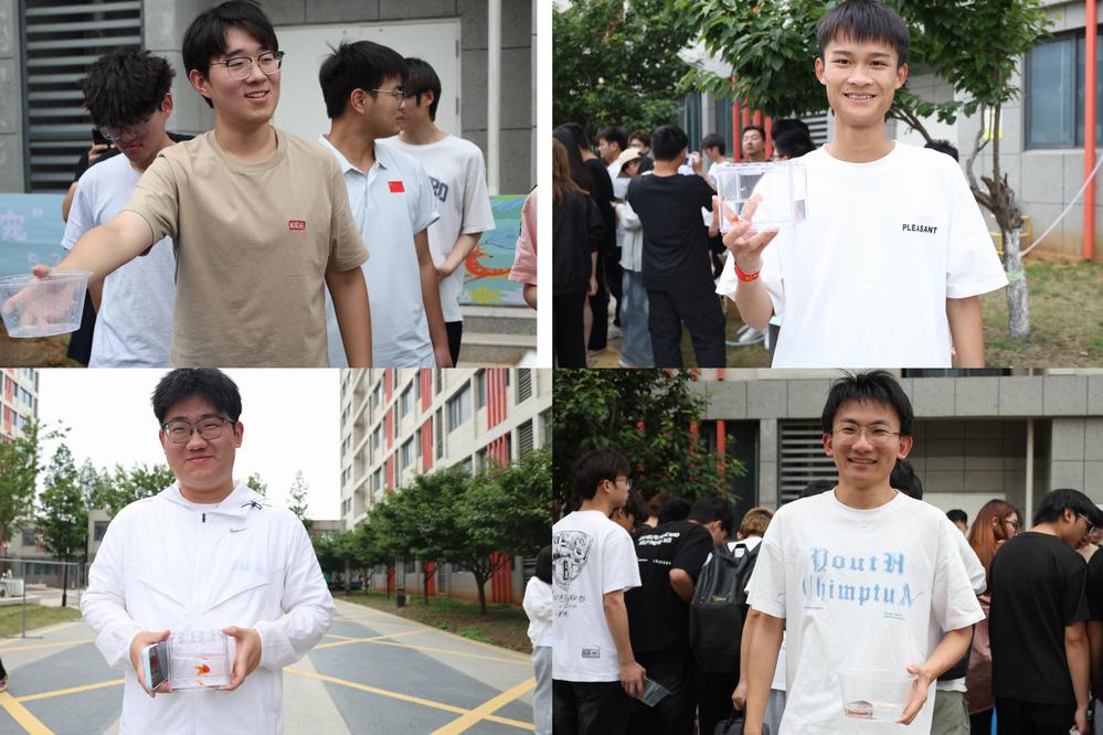 活动现场气氛热烈,同学们围在水族箱旁,手持纸网,眼神专注地锁定目标金鱼。纸网在水中上下翻飞,试图捕捉那灵动的小生命。每成功捞起一条金鱼,现场便响起阵阵欢呼;即使偶尔失败,同学们也毫不气馁,调整策略再次尝试。欢声笑语回荡在活动现场,同学们沉浸在这简单而纯粹的游戏中,平日里的烦恼与压力似乎都被抛到了九霄云外。此刻的他们全身心地享受着当下的欢乐时光,彼此之间的距离也在不知不觉中拉近,陌生的面孔逐渐熟悉,交流愈发热络。