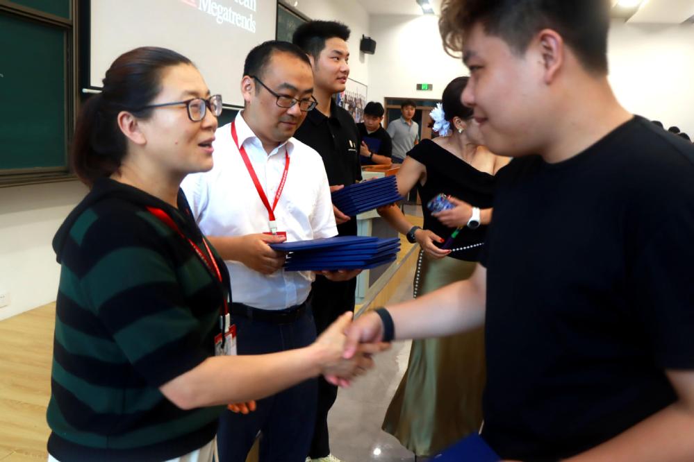 毕业典礼后,学校党委委员、副校长孔德丽和系领导班子共同为毕业生颁发毕业证书。