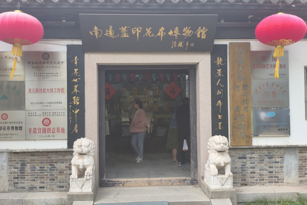 7月上旬,实践团队走进南通蓝印花布博物馆。这里堪称蓝印花布艺术的殿堂。馆内丰富的藏品跨越古今,从古朴典雅的明清老布,到设计新颖的现代衍生品,系统展示了蓝印花布的历史沿革、地域特色、工艺演变和文化内涵。