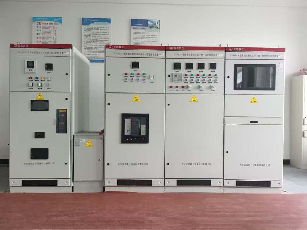 (1)智能供配电实训室。该实训室与核心型合作单位联合建设,以强电为主,将强电与弱电技术相结合,承担了工厂供配电、继电保护、配电网调度等实训项目,为学生提供了一个良好的工程实践环境。